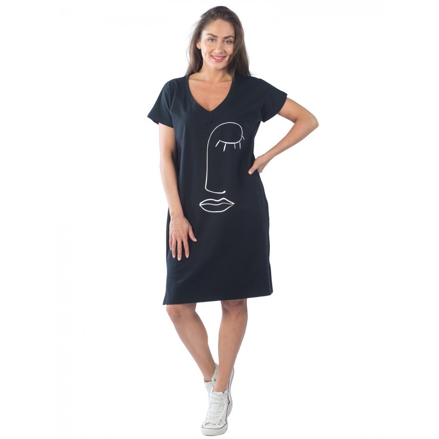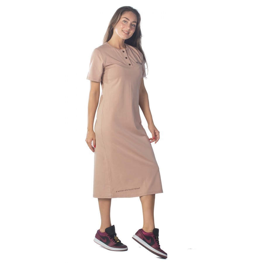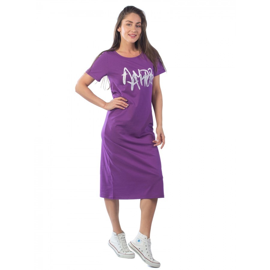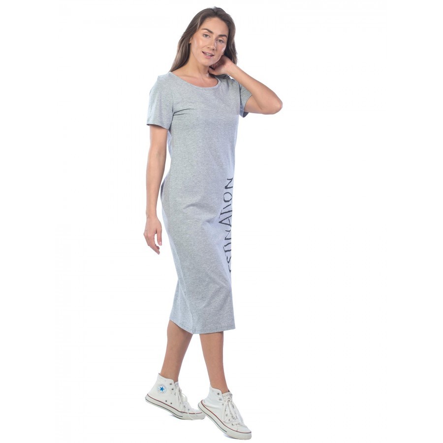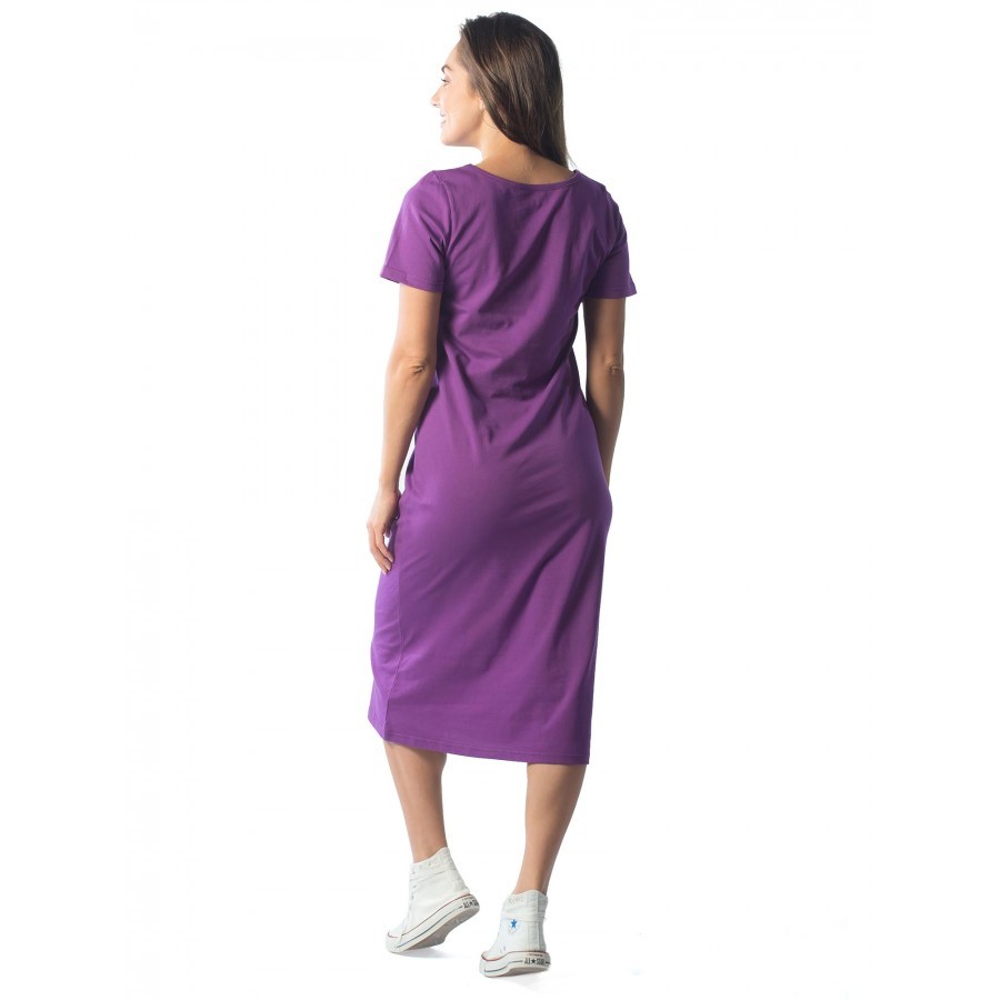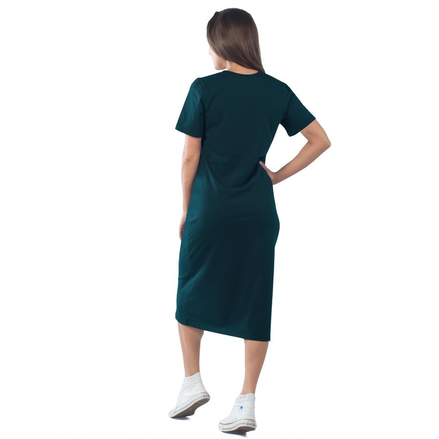 Платье женское длинное в артикуле КП1479 можно приобрести для долгих прогулок с ребенком, не очень торжественных мероприятий, работы, встречи с друзьями, свидания и вечернего променада вдоль набережно... Показать описанией. Вещь хорошо впишется в гардероб в стиле кэжуал, так как бордовое либо же серое платье комфортно в носке и позволяет быстро собрать минималистичный, но красивый образ. При наличии вдохновения можно поэкспериментировать в комбинировании платья с коротким рукавом и различных аксессуаров, например, атласного шейного платка и строгого пояса или плетеного ремешка. Таким образом, платье трикотажное с рукавом практически универсально и подходит как для дома, так и для улицы. Интересен покрой изделия. Благодаря глубокому V-образному вырезу верх не обтягивает грудь, поэтому цельнокройные рукава тоже не стесняют движения и достаточно свободно сидят по плечам. Отложный воротник придает толику официозности и консервативности, поэтому вещь можно вписать не только в повседневные и спортивные луки, но и в классические комплекты. Длина платья женского – макси. Это стоит учитывать девушкам невысокого роста, так как на фотографии рост модели соответствует 172 см. В первом случае подол изделия может доходить до пола. Тогда изделие можно сочетать с ботильонами, клогами и обувью на танкетке. В остальных случаях платье летнее для женщин хорошо смотрится с грубыми ботинками, сандалиями гладиаторами и эспадрильями. Материал платья женского с рукавом – 100%-ная кулирная гладь, которая практически не требует глажки. Благодаря особому плетению нитей, материя невесомая и нежная, поэтому вещь можно также использовать в качестве ночной сорочки и домашнего платья с рукавом. Выделка ткани тонкая, деликатная, однако при носке не просвечивает. Тем не менее рекомендуется поддевать специализированное бесшовное или корректирующее белье, позволяющее дополнительно подчеркнуть достоинства фигуры. Воротник платья для дома выполнен с использованием ткани рибаны, которая не вызывает раздражения в районе ключиц, благодаря своей мягкости. Боковые швы оканчиваются небольшими заостренными разрезами в районе голени. Лучше всего подойдет ручной режим стирки при температуре воды 30 градусов и менее. Не рекомендуется сушить платье длинное с рукавом вертикально, так как есть риск вытягивания. Особое внимание следует уделить зоне воротника, чтобы он не деформировался. Платье повседневное с надписью имеет с левой стороны небольшие символические рисунки, которые могут нести тайный смысл. Например, вариант в коричневом оттенке имеет вышивку с голубыми ландышами, символизирующими скромность и доброту. Красное платье имеет рисунок дерзкой девушки в темных очках, что подчеркивает задор и жизнерадостность обладательницы элемента гардероба. В вариациях других цветов какие-либо узоры отсутствуют. Но даже лаконичная модель цвета хаки позволит своей обладательнице оказаться в центре внимания.