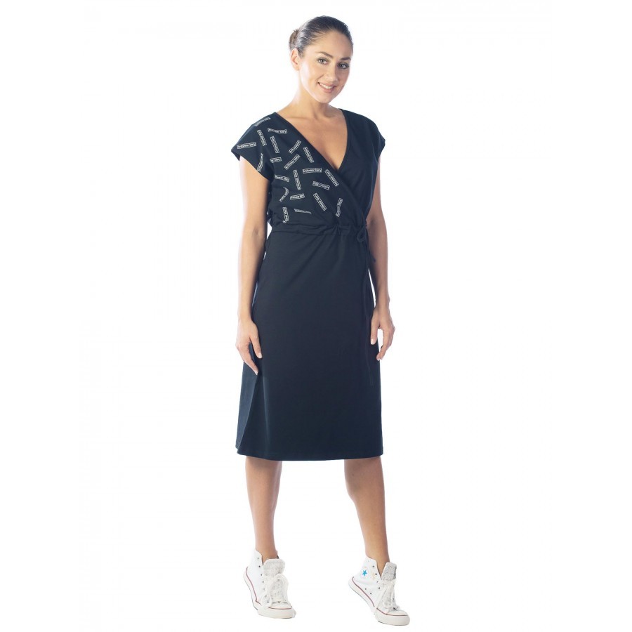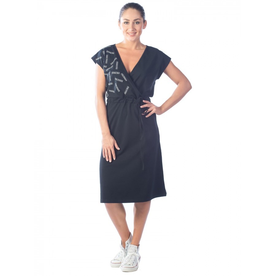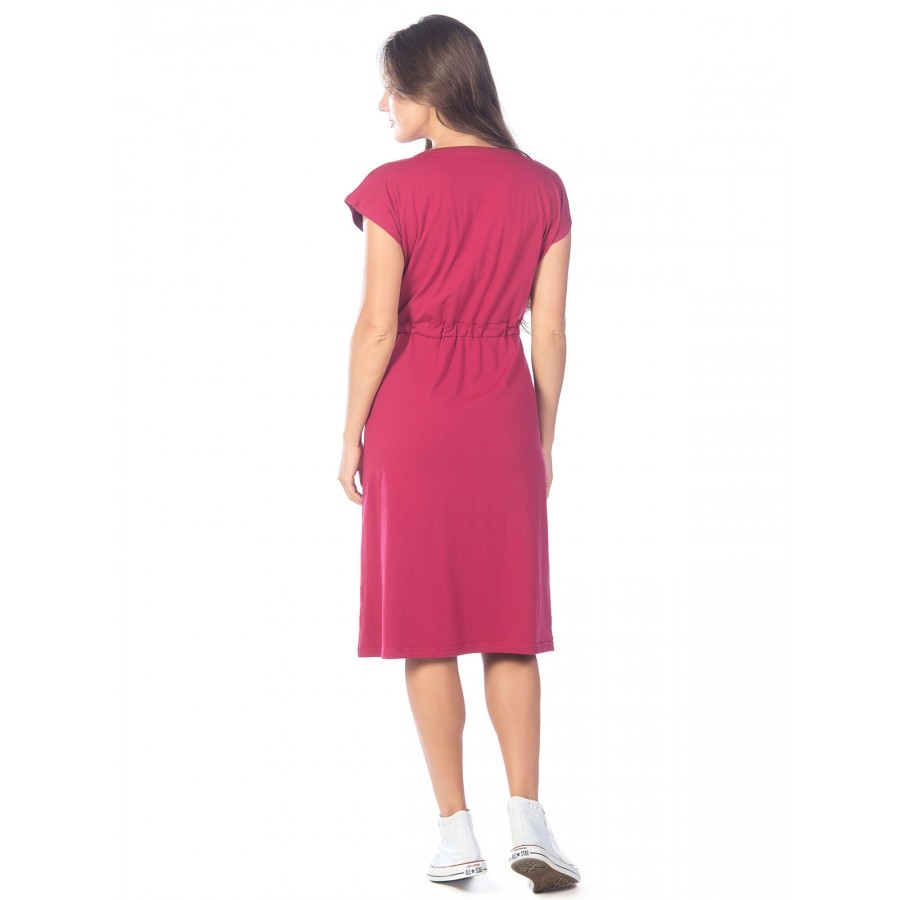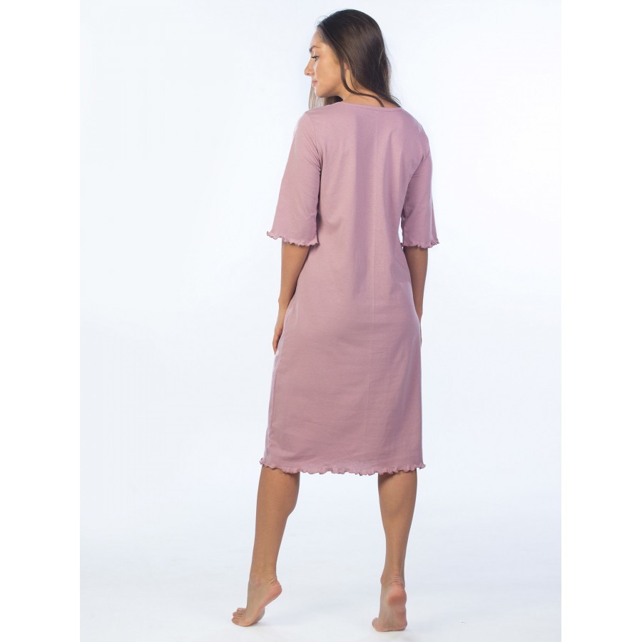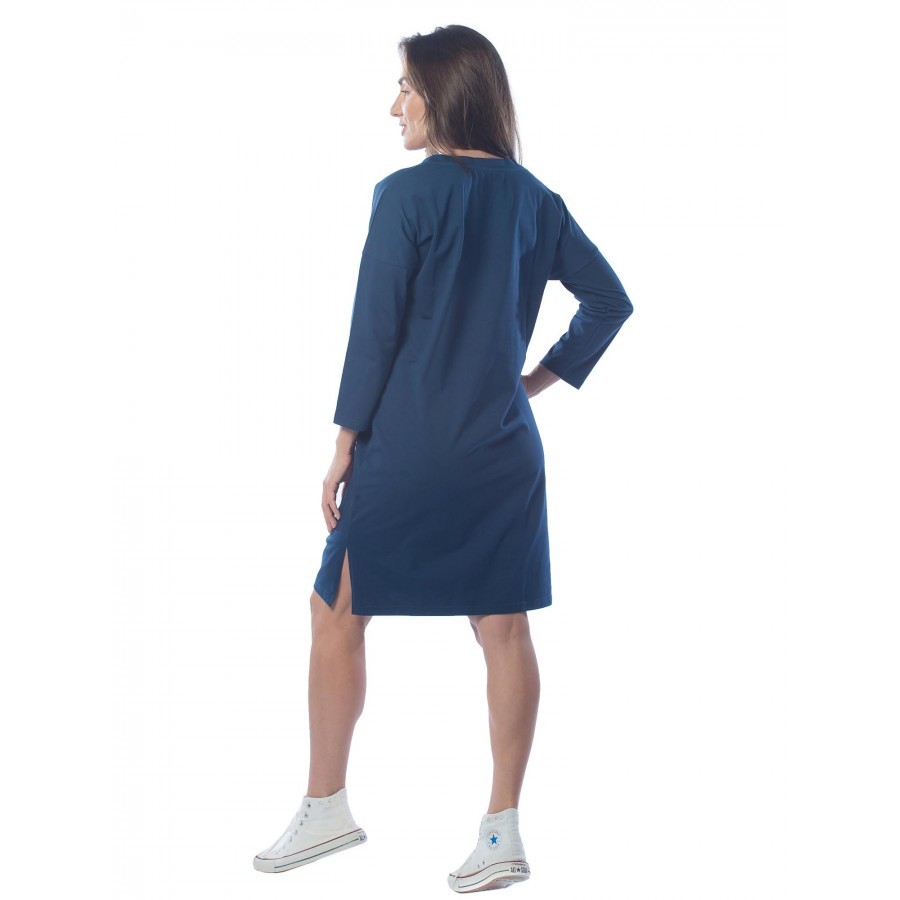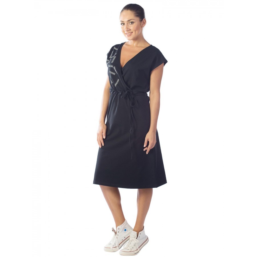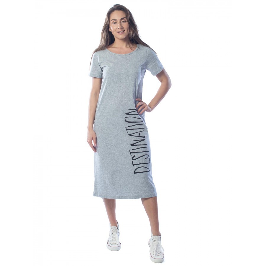 Платье женское длинное в артикуле КП1479 можно приобрести для долгих прогулок с ребенком, не очень торжественных мероприятий, работы, встречи с друзьями, свидания и вечернего променада вдоль набережно... Показать описанией. Вещь хорошо впишется в гардероб в стиле кэжуал, так как бордовое либо же серое платье комфортно в носке и позволяет быстро собрать минималистичный, но красивый образ. При наличии вдохновения можно поэкспериментировать в комбинировании платья с коротким рукавом и различных аксессуаров, например, атласного шейного платка и строгого пояса или плетеного ремешка. Таким образом, платье трикотажное с рукавом практически универсально и подходит как для дома, так и для улицы. Интересен покрой изделия. Благодаря глубокому V-образному вырезу верх не обтягивает грудь, поэтому цельнокройные рукава тоже не стесняют движения и достаточно свободно сидят по плечам. Отложный воротник придает толику официозности и консервативности, поэтому вещь можно вписать не только в повседневные и спортивные луки, но и в классические комплекты. Длина платья женского – макси. Это стоит учитывать девушкам невысокого роста, так как на фотографии рост модели соответствует 172 см. В первом случае подол изделия может доходить до пола. Тогда изделие можно сочетать с ботильонами, клогами и обувью на танкетке. В остальных случаях платье летнее для женщин хорошо смотрится с грубыми ботинками, сандалиями гладиаторами и эспадрильями. Материал платья женского с рукавом – 100%-ная кулирная гладь, которая практически не требует глажки. Благодаря особому плетению нитей, материя невесомая и нежная, поэтому вещь можно также использовать в качестве ночной сорочки и домашнего платья с рукавом. Выделка ткани тонкая, деликатная, однако при носке не просвечивает. Тем не менее рекомендуется поддевать специализированное бесшовное или корректирующее белье, позволяющее дополнительно подчеркнуть достоинства фигуры. Воротник платья для дома выполнен с использованием ткани рибаны, которая не вызывает раздражения в районе ключиц, благодаря своей мягкости. Боковые швы оканчиваются небольшими заостренными разрезами в районе голени. Лучше всего подойдет ручной режим стирки при температуре воды 30 градусов и менее. Не рекомендуется сушить платье длинное с рукавом вертикально, так как есть риск вытягивания. Особое внимание следует уделить зоне воротника, чтобы он не деформировался. Платье повседневное с надписью имеет с левой стороны небольшие символические рисунки, которые могут нести тайный смысл. Например, вариант в коричневом оттенке имеет вышивку с голубыми ландышами, символизирующими скромность и доброту. Красное платье имеет рисунок дерзкой девушки в темных очках, что подчеркивает задор и жизнерадостность обладательницы элемента гардероба. В вариациях других цветов какие-либо узоры отсутствуют. Но даже лаконичная модель цвета хаки позволит своей обладательнице оказаться в центре внимания.