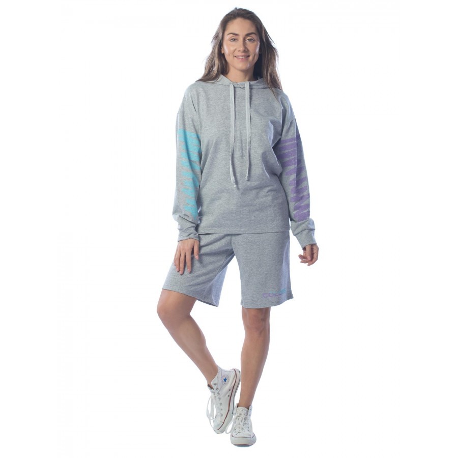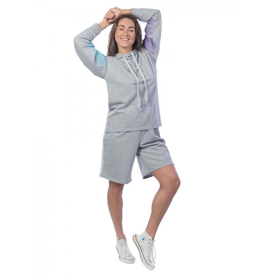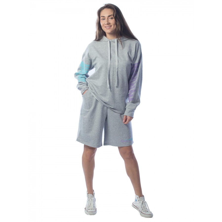 Костюм цвета морского бриза – подходящий вариант для спортивных дам. Комплект подойдет для занятий спортом на улице, так как в его состав входит теплая толстовка с капюшоном на случай дождя. Благородн... Показать описаниеый бирюзовый цвет особенно придется к лицу обладательницам голубых и серых глаз. Набор хорошо смотрится на девушках с теплым подтоном кожи, делая образ еще ярче и живее. Шорты прямого кроя на средней посадке сидят на резинке, что позволяет избежать дискомфорта при носке. Капюшон у худи объемен и закрывает голову, эффективно спасая от осадков и яркого солнца. На фото модель с параметрами 90.60.90 рост 172