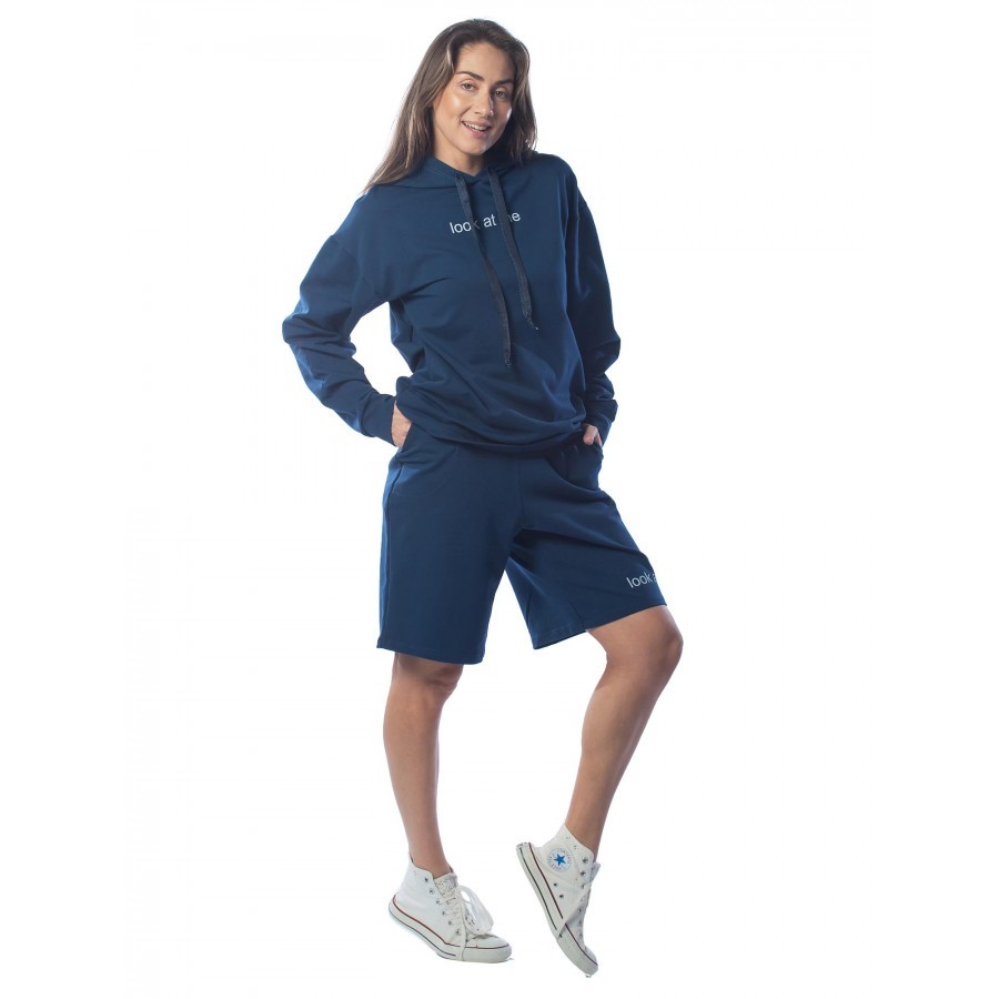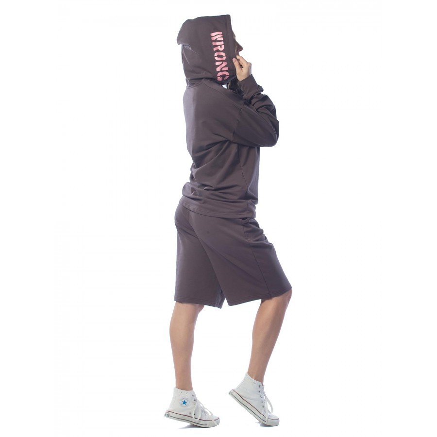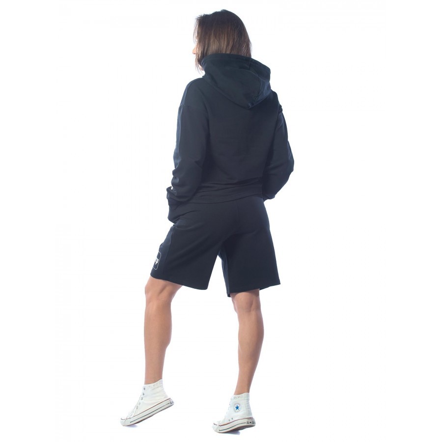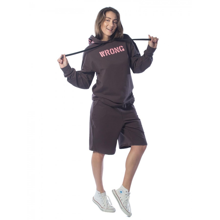 Черный – цвет сезона. Костюм KEEP YOUR DISTANCE, выполненный в угольно-черном цвете, является неповторимой классикой в гардеробе своего владельца. Подойдет фанатам стиля street-wear. Строгий темный от... Показать описаниетенок изделия разбавлен белыми шнурками и трендовыми текстовыми вставками. Толстовка имеет объемный капюшон, что очень удобно при неожиданных осадках. Длина шорт по колено не сковывает движений и делает комплект поистине универсальным, подходящим для разных целей – от занятий спортом до сбора грибов и ягод в теплом лесу. Крой не только комфортный, но и очень модный. На фото модель с параметрами 90.60.90 рост 172см