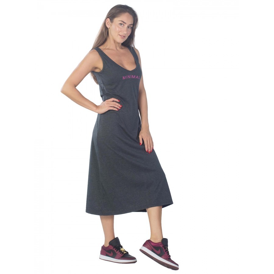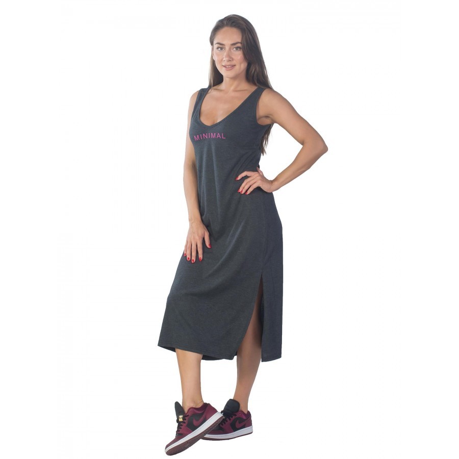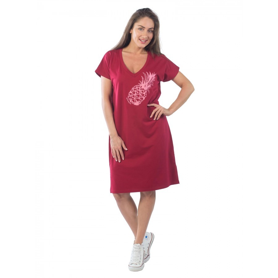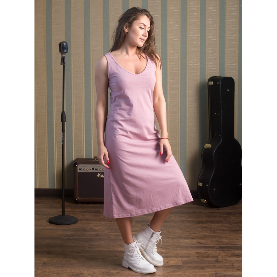 Платье майка – женская одежда (КП1437П2), созданная для отдыха дома или на пляже, так как оно не имеет рукавов и помогает приобрести насыщенный загар в зоне декольте и рук. Сарафан платье имеет притал... Показать описаниеенный крой с тенденцией к зауживанию в районе подола. Также изделие включает в себя боковые разрезы, что придает пикантности выбранному образу. Такой открытый элемент одежды будет уместен и в домашней обстановке, и на улицах города, но в сочетании с легкой джинсовой курткой цвета индиго или хаки. Платье майку с разрезом также можно использовать в качестве ночной сорочки, так как ткань достаточно тонкая и мягкая. Крой изделия позволяет носить вещь и дамам с аппетитными формами, и девушкам стройного телосложения. Все строчки ровные, швы плотные и аккуратные. Главное, обратить внимание на ростовку платья сарафана для дома. Рост модели на фото – 1.72, а параметры фигуры – 90/60/90, и размер платья – 44. При большем объеме по талии можно смело заказать вариант побольше. При желании создать оверсайз-образ имеет смысл остановить свой выбор на платье сарафане повседневном, по крайней мере, на два размера больше. Также ткань склонна к растягиванию, поэтому, чтобы продлить срок службы изделия, можно сделать заказ платья на один размер меньше. Чтобы платье летнее для женщин смотрелось хорошо, необходимо учитывать пропорции, особенно по талии и спинке. Если этого не сделать, линия выреза может смещаться. Соответственно, и длина платья может останавливаться не только в области икр, но и ближе к лодыжкам. При росте выше 1.80 длина платья будет чуть ниже колен. Поэтому при выборе следует ориентироваться на высоту талии и длину торса. Платье сарафан трикотажное изготовлено из натурального материала (хлопок), поэтому подходит для носки в жару, в условиях повышенной влажности, а также в зимний сезон дома, когда активно работает отопительная система. Также спортивное платье майка подойдет для выполнения легких физических упражнений на свежем воздухе. При этом длина изделия накладывает определенные ограничения, например, на спортивные игры. Плотная текстура ткани увеличивает впитывающие свойства материала. При стирке важно соблюдать режим температуры воды, который соответствует 30 °C. Сушить изделие рекомендуется в горизонтальном положении, завернутым в полотенце, чтобы избежать деформации ткани и потери цвета. Вырез у платья V-образный и достаточно откровенный, поэтому платье майка длинное идеально будет смотреться на обладательницах роскошного бюста. Майка домашняя – платье повседневное, представленное в нескольких оттенках: фиолетовое (уходящим в синий оттенок) и бордовое (напоминает малиновый из-за матового эффекта). Красная удлиненная майка, представленная на фото, помимо смелого выреза, имеет английскую надпись, которая носит двойное значение. Игра слов в переводе может означать как «довольно умную» особу, так и «симпатичную и при этом смышленую» девушку.