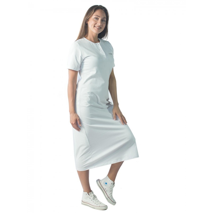 Нежное женское платье-поло длиной ниже колена. Платье-поло считается одним из универсальных и подходит абсолютно всем девушкам. Идеально подходит для прогулок, пикников и нежного домашнего образа. Оно... Показать описание не облегает плотно, но позволяет чувствовать себя комфортно и свободно. Платье выполнено из трикотажа средней плотности с большим содержанием хлопка, не просвечивает, на ощупь мягкий и приятный к телу. Ваш стиль для любого времени года и идеальный вариант для прогулок. На фото модель 44 размера, с параметрами 90/60/90. Рост модели 172 см. Товар представлен напрямую от производителя России.