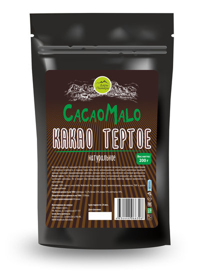 Все какао-продукты оказывают благоприятное воздействие на здоровье организма, одновременно удовлетворяя естественную потребность в сладком. Какао бобы богаты антиоксидантами, способствуют укреплению с... Показать описаниеердечной мышцы, оказывают оздоравливающее действие, улучшаю работу мозга, способствуют умственной деятельности. Тертое какао - это перемолотая масса очищенных какао-бобов, неотъемлемый ингредиент для приготовления настоящего шоколада. Он и придает ему неповторимый вкус и полезные свойства. Широко применяется в косметологии. Состав: тертые какао-бобы. Не содержит сахара, ароматизаторов, консервантов, ГМО и других вредных добавок. Пищевая ценность на 100г: углеводы- 12,3%, белки-23%, жиры-54%, клетчатка-10% Энергетическая ценность на 100г: 515Ккал Сертификаты: Халяль, Кашерно. Страна происхождения: Кот д’ Ивуар.