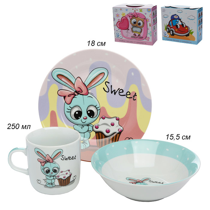 Набор посуды 3 предмета Зайчонок / C523#  /12/