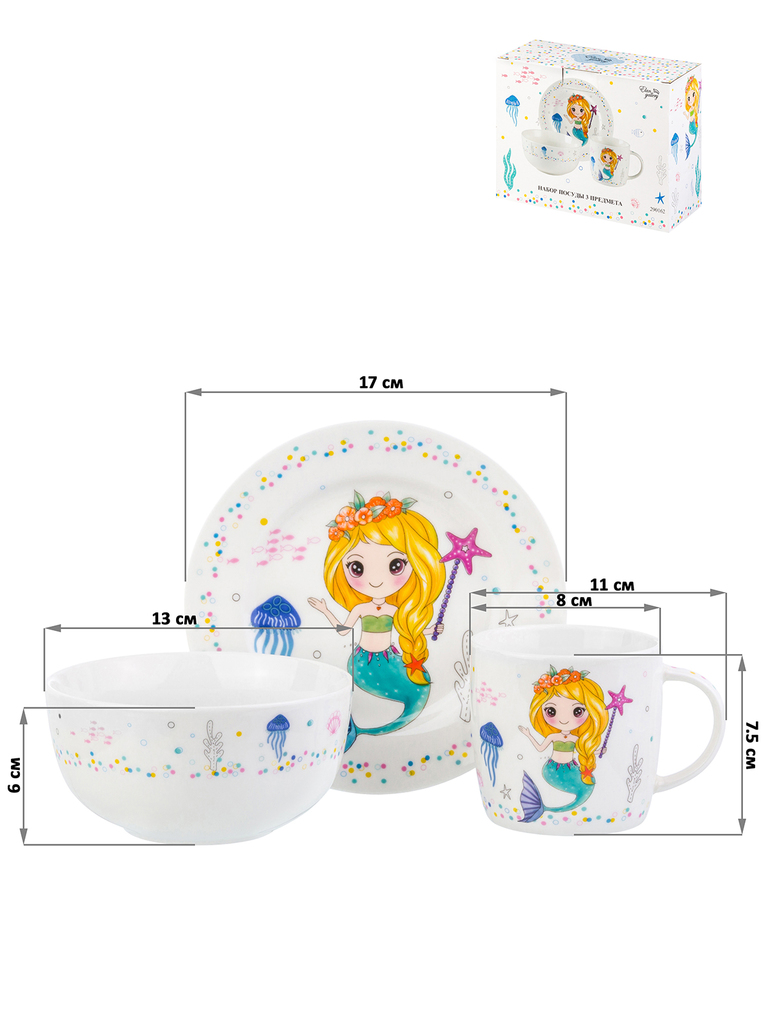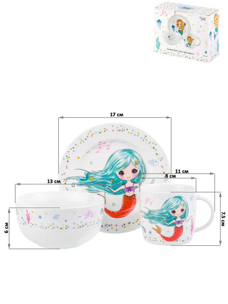 Набор посуды 3 предмета Русалка / C652# /уп6/12/ ПРОМО АКЦИЯ УПАКУЙ САМ