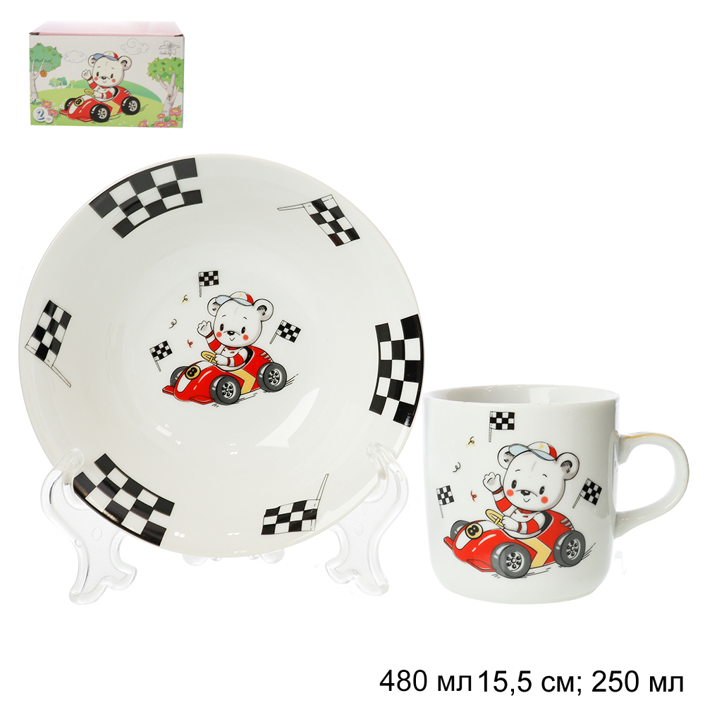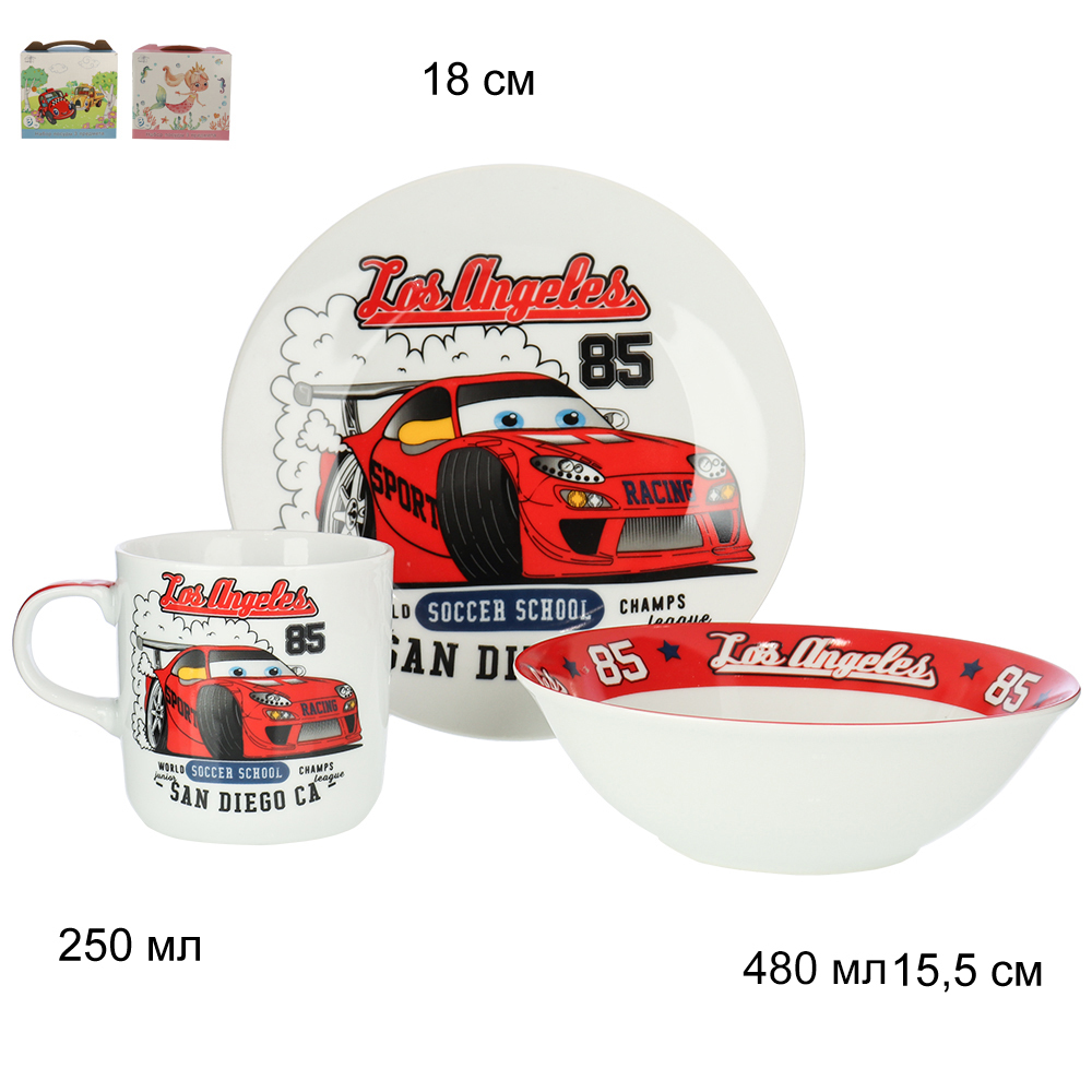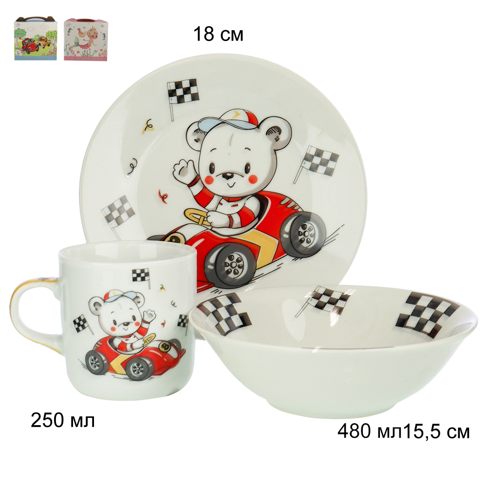 Набор посуды 3 предмета Мишка гонщик / C691# /уп6/12/ ПРОМО АКЦИЯ УПАКУЙ САМ Вопросы по товару