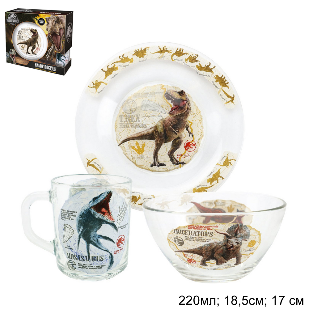 Набор посуды 3 предмета Мир Юрского периода Энциклопедия / 298309 // стекло