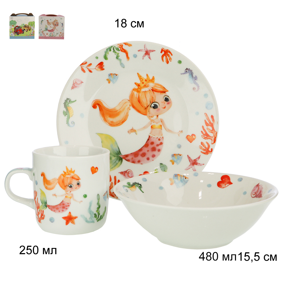 Набор посуды 3 предмета Русалка с золотыми волосами / 290162 // п/у