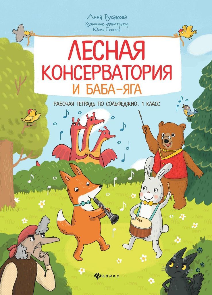"Лесная консерватория и Баба-яга" - красочная рабочая тетрадь по сольфеджио для 1-го класса ДМШ и ДШИ. Под руководством учителя-Медведя дети вместе с лесными зверятами выполняют весёлые упражнения по ... Показать описаниенотной грамоте, а Баба-яга пытается им помешать. Обилие разноплановых заданий (академические упражнения, музыкальные игры и ребусы, ритмические задачки, исправление ошибок в нотной записи, кроссворды, нахождение соответствий, раскраски, логические головоломки по нотной грамоте и др.), доступный для пения материал, в том числе из произведений композиторов-классиков, а также яркое цветное оформление, позволяющее познакомиться с богатым миром инструментов, делают эту рабочую тетрадь уникальной в ряду существующих пособий по сольфеджио. Рабочая тетрадь "Лесная консерватория и Баба-яга" адресована широкому кругу читателей. Она может быть использована в качестве учебного пособия в ДМШ и ДШИ, в виде книжки упражнений для обучения музыке в домашних условиях, а также как весёлый сборник заданий для повторения на каникулах пройденного в 1-м классе.