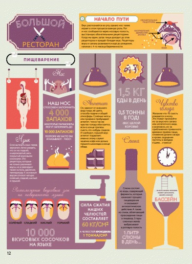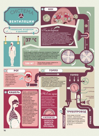 Что есть в каждом большом городе? Железная дорога и телефонная станция, фабрика и музей, ресторан и киностудия, интернет и канализация! А знаешь ли ты. что все это - и многое другое - есть и у тебя вн... Показать описаниеутри! Эта книга - путеводитель по анатомии, в котором организм человека сравнивается с огромным мегаполисом. И как в мегаполисе, все в теле человека находится в движении и взаимодействии: органы, ткани, сосуды и клетки. Чтобы ты мог смотреть кино, слушать музыку, кататься на самокате, есть мороженое и даже чихать, требуется одновременная и бесперебойная работа разных органов и систем твоего тела. Анатомия в иллюстрациях, схемах и цифрах - узнай о себе все!