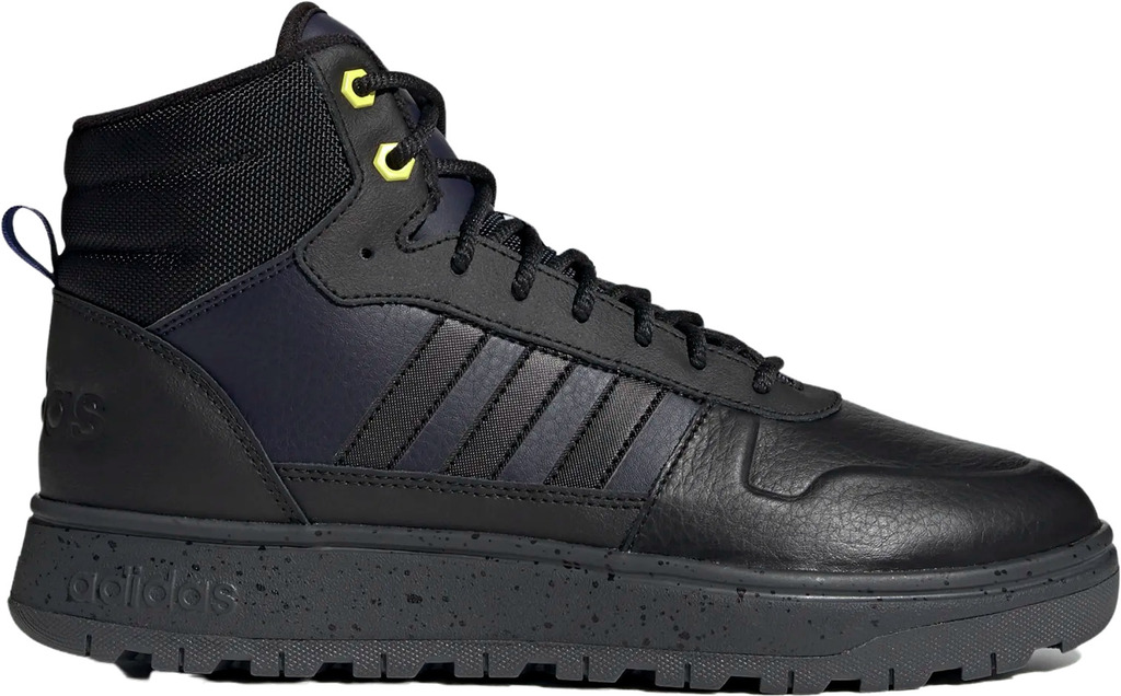 Больше картинок (информации) и таблица размеров на странице. Ботинки Frozetic. Зима не повод забыть о баскетбольном стиле. Эти кроссовки adidas с многослойным кожаным верхом готовы к любым погодным условиям. Прочная подошва обеспечивает дополнительное сцепление на скользких тротуарах. Модель выполнена из переработанных материалов в рамках наших обязательств по сокращению пластиковых отходов. 20% элементов верха минимум на 50% состоят из переработанных материалов. Материал: синтетические материалы, текстиль, резина