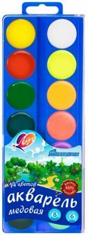 Акварель предназначена для изобразительного творчества детей. Акварельные краски очень нежные и прозрачные, наполненные светом и воздухом, с их помощью можно создавать прекрасные светлые картины. Важн... Показать описаниеым достоинством медовой акварели является ее повышенная устойчивость к выгоранию под воздействием прямых ультрафиолетовых лучей. С ее помощью школьник сможет легко освоить технику рисования, научится смешивать цвета для получения необходимых оттенков. Цвета чистые, краска не дает осадка, быстро сохнет и обладает хорошей разносимостью на бумаге. Количество цветов: 12. Кисть в набор не входит. Для детей старше 3-х лет. Упаковка: картонный пенал.