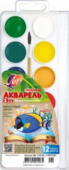 Акварель Луч серии Zoo 12 цветов, без кисточки. Высококачественная краска для детского творчества с яркими и чистыми цветами, изготовленная по классической рецептуре с использованием мёда. Прекрасно р... Показать описаниеазмывается и разносится по поверхности бумаги. Краски смешиваются между собой, сохраняя насыщенность цвета. Акварель легко смывается с рук и одежды. Краски упакованы в пластмассовую коробочку с прозрачной крышкой, круглые кюветы. Хранить в сухом отапливаемом помещении при температуре не ниже 0С на расстоянии не менее 1 м от приборов отопления.