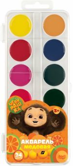 Краски "Мульти-Пульти" серии "Чебурашка" обладают хорошей укрывистостью и остаются яркими при высыхании. Акварель предназначена для детей старше 3-х лет и годится для работы в школе или в детском саду... Показать описание. Смешивание акварели "Мульти-Пульти" дает чистые оттенки. Натуральные компоненты делают ее безопасной для здоровья детей. Пластиковая упаковка акварели удобна в использовании, а наклейка на упаковке с любимым героем - Чебурашкой делает набор красок более интересным и запоминающимся. Яркие краски 24 цветов разделены надёжными кюветами, благодаря которым цвета не смешаются при работе. - Количество цветов: 24, - Форма кюветы: круглая, - Объем краски: 3,5 см3.