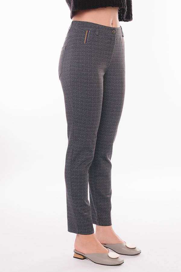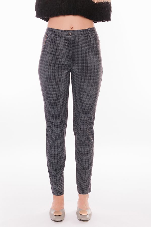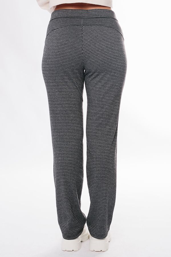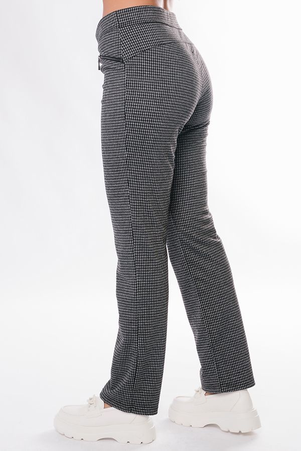 Брюки из трикотажного полотна в клеточку. Детали: спереди имитация гульфика, боковые карманы с отрезным бочком, по бокам брюк трикотажная однотонная вставка шириной 1,5 см., в виде лампасов. В поясе ... Показать описаниерезина. Длина по внутреннему шву - 72,5 см. Ширина низа - 13 см. Числовые параметры соответствуют размеру 42. Размер модели на фото: 44. Параметры модели: 86-63-94. Рост модели на фото: 173 см. Производитель: Черно-Красная Этикетка Состав ткани: Район 71%, Нейлон 25%, Спандекс 4% Сезон: Весна - Осень Пол: Женский Посадка: Высокая Силуэт: Зауженные книзу Длина: 9/10 Дизайн ткани: Клетка Цвет: Темно-серый Тэги: * Весна-Осень * Зауженные книзу * 9/10 * Высокая посадка * Клетка * Серый