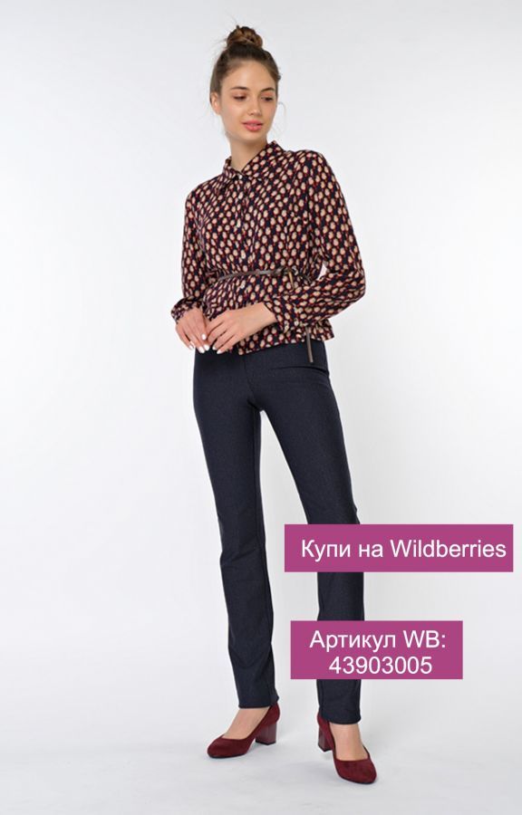 Брюки классические со стрелками, без застежки, на поясе из эластичной ткани. Плотная ткань, подходит для прохладного времени года. Детали: на эластичном поясе комбинированная отделка (в поясе резина 4... Показать описание,0 см). Практичная модель для офисных сотрудников. Идеальная посадка на фигуры больших размеров. Длина по внутреннему шву - 84 см. Ширина низа - 21 см. Числовые параметры соответствуют размеру 46. Размер модели на фото: 44. Параметры модели: 86-63-94. Рост модели на фото: 173 см. Производитель: Черно-Красная Этикетка Состав ткани: Полиэстер 63%, Вискоза 34%, Эластан 3% Сезон: Весна - Осень, Зима Пол: Женский Посадка: Высокая Силуэт: Прямой от колена (сигареты) Длина: Полная Дизайн ткани: Однотонный Цвет: Темно-синий Тэги: * Весна-Осень * Зима * Прямой от колена(сигареты) * Полная * Габардин * Синий