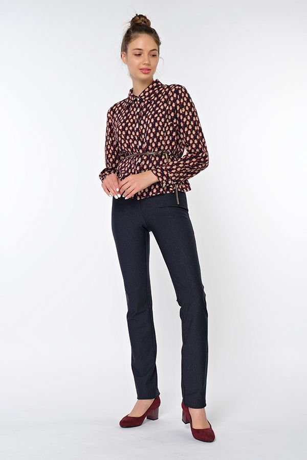 Брюки классические со стрелками без застежки на поясе из эластичной ткани. Детали: имитация боковых карманов, декоративные молнии, на эластичном поясе комбинированная отделка (в поясе резина 4,0 см). ... Показать описаниеПо линии низа отворот, который можно использовать для изменения длины брюк. Практичная модель для офисных сотрудников. Идеальная посадка на фигуры больших размеров. Длина по внутреннему шву 71 см. Ширина по линии низа: 18 см. *Числовые параметры соответствуют размеру 46. Размер модели на фото: 46 Параметры модели: 90-68-99 Рост модели на фото: 175 см. Состав ткани: Полиэстер 75%, Вискоза 22%, Лайкра 3% Сезон: Весна - Осень Пол: Женский Посадка: Высокая Силуэт: Зауженные книзу Длина: 9/10 Дизайн ткани: Рисунок Цвет: Синий Тэги: * Весна-Осень * зауженные книзу * 9/10 * Высокая посадка * Синий