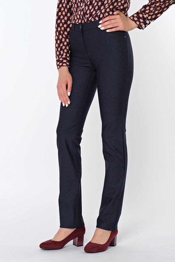 Брюки классические со стрелками, без застежки на поясе из эластичной ткани. Плотная ткань, подходит для холодного времени года. Детали: на эластичном поясе комбинированная отделка (в поясе резина 4,0 ... Показать описаниесм). Практичная модель для офисных сотрудников. Идеальная посадка на фигуры больших размеров. Длина по внутреннему шву - 84 см. Ширина низа - 21 см. *Числовые параметры соответствуют размеру 46 Размер модели на фото: 48. Параметры модели: 90-68-102. Рост модели на фото: 175 см. Производитель: Черно-Белая Этикетка Состав ткани: Полиэстер 75% / Вискоза 22% / Лайкра 3% Сезон: Весна - Осень Пол: женский Посадка: Высокая Силуэт: Прямой от колена (сигареты) Длина: Полная Дизайн ткани: Рисунок Цвет: Черно-синие Тэги: * Весна - Осень * Прямой от колена (сигареты) * Полная * Рисунок * Черно-синие * Выгодная покупка