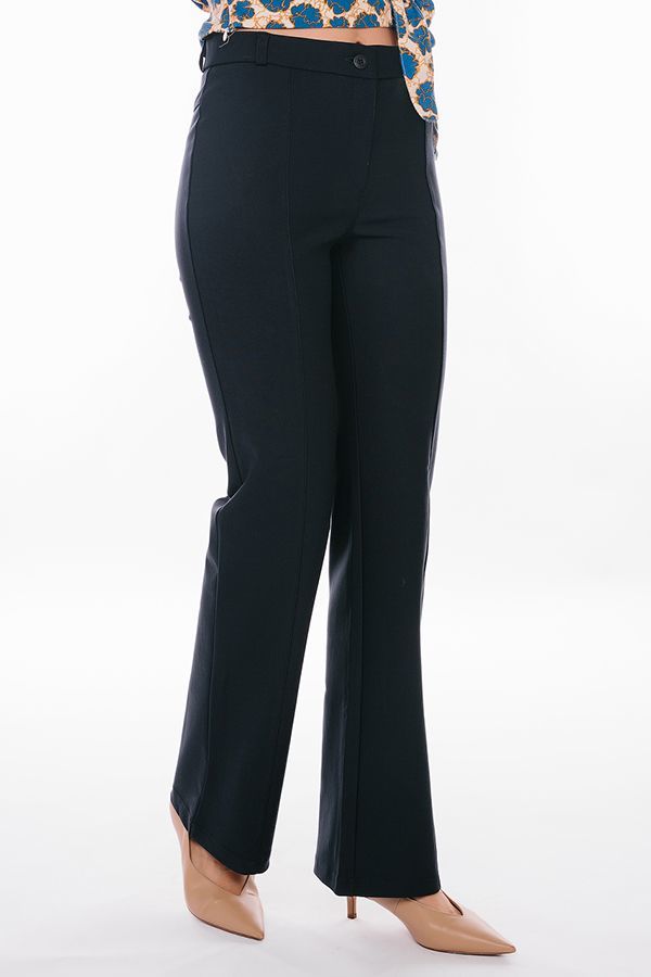 Брюки классические со стрелками, без застежки на поясе из эластичной ткани. Плотная ткань, подходит для холодного времени года. Детали: на эластичном поясе комбинированная отделка (в поясе резина 4,0 ... Показать описаниесм). Практичная модель для офисных сотрудников. Идеальная посадка на фигуры больших размеров. Длина по внутреннему шву - 84 см. Ширина низа - 21 см. *Числовые параметры соответствуют размеру 46 Размер модели на фото: 48. Параметры модели: 90-68-102. Рост модели на фото: 175 см. Производитель: Черно-Белая Этикетка Состав ткани: Полиэстер 75% / Вискоза 22% / Лайкра 3% Сезон: Весна - Осень Пол: женский Посадка: Высокая Силуэт: Прямой от колена (сигареты) Длина: Полная Дизайн ткани: Однотонный Цвет: Черный Тэги: * Весна - Осень * Прямой от колена (сигареты) * Полная * Однотонный * Черный * Выгодная покупка