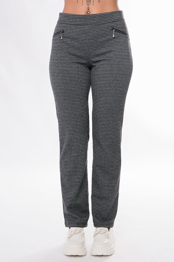 Брюки в молодежном стиле из трикотажного полотна в клетку. Модель без застежки на трикотажном поясе (в поясе резина 3,0 см), спереди имитация прорезных карманов на молнии, сзади кокетка. Длина по внут... Показать описаниереннему шву - 74 см. Ширина по линии низа - 18,5 см. Числовые параметры соответствуют размеру 48. Размер модели на фото: 46. Параметры модели: 86-64-100. Рост модели на фото: 174 см. Производитель: Черно-Красная Этикетка Состав ткани: Полиэстер 75%, Вискоза 22%, Лайкра 3% Сезон: Весна - Осень, Зима Пол: Женский Посадка: Высокая Силуэт: Прямой от колена (сигареты) Длина: Полная Дизайн ткани: Клетка мелкая Цвет: Серый, Серо-черная клетка Тэги: * Весна-Осень * Зима * Прямой от колена(сигареты) * Полная * Клетка * Трикотаж * Серый