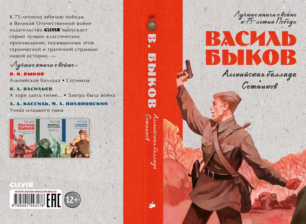 К 75-летнему юбилею победы в Великой Отечественной войне издательство Clever выпускает серию лучших классических произведений, посвященных этой героической и трагичной странице нашей истории, - Лучшие... Показать описание книги о войне - В. В. Быков Альпийская баллада. Сотников - Б. Л. Васильев А зори здесь тихие... Завтра была война - Л. А. Кассиль, М. Л. Поляновский Улица младшего сына
