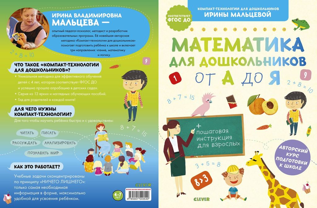 Ирина Владимировна Мальцева - опытный педагог-психолог, методист и разработчик образовательных программ. Её новейшая авторская методика компакт-технологии для дошкольников помогает подготовить ребёнка... Показать описание к школе и включает три направления чтение, математику и логику. Что такое компакт-технологии для дошкольников? уникальная методика для эффективного обучения детей с 4 лет, которая соответствует ФГОС ДО и успешно прошла апробацию в детских садах. серия из 13 ярких и наглядных обучающих пособий. гид для родителей в каждой книге!