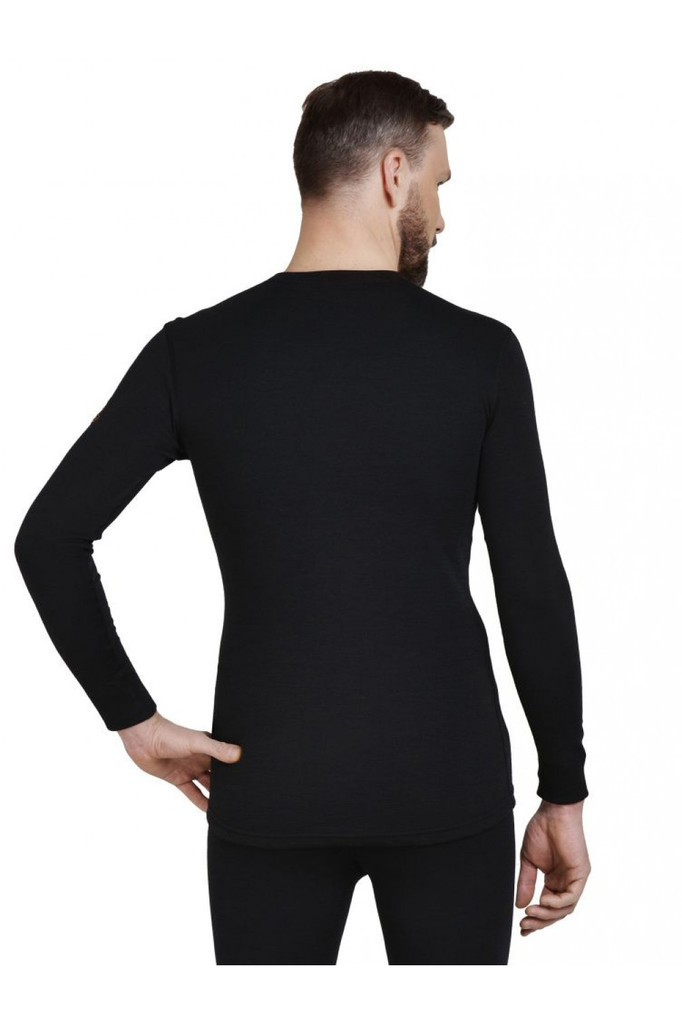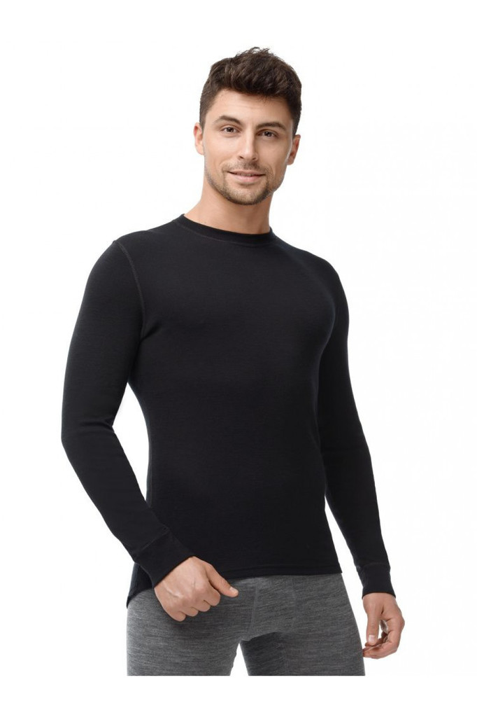 Тёплая мужская термофутболка серии Outdoor для активного отдыха Футболка Norveg Outdoor Classic предназначена для активного отдыха зимой — горные и беговые лыжи, сноуборд, бег, охота, рыбалка, походы.... Показать описание Классический круглый ворот — термобельё не выглядывает из-под второго слоя одежды. Смешанный трикотаж шерсть+синтетика с добавлением эластана — футболка хорошо тянется и не мешает движениям. Синтетика добавляет прочности и износостойкости изделию. Шерсть убивает запах пота. Даже после целого дня активного катания, термобельё из шерсти не будет так сильно пахнуть, как полностью синтетическое. Футболка Outdoor Classic вместе с мужскими кальсонами Outdoor Hunter составят отличный комплект термобелья для активной и веселой зимы! Двухслойный комбинированный материал — эффективно отводит влагу и согревает Нижний слой Thermolite — синтетический материал, состоит из множества тонких волокон полых внутри. Большое количество волокон соприкасается с кожей и быстро отводят пот на второй слой, обеспечивая телу сухое тепло. Воздух внутри каждого волокна сохраняет тепло и обеспечивает лёгкость материалу. Верхний слой шерсть мериносов — отводит влагу от первого слоя наружу и согревает. Шерсть мериноса — это единственный природный материал, основные качества которого учёные не могут воспроизвести, используя синтетическое сырьё. Свойства термического стабилизатора, которыми обладает шерсть овец этой породы, уникальны и не имеют искусственных аналогов. Удобство эксплуатации. Плоские швы не давят и не натирают кожу. Удлинённая спинка защищает поясницу, анорак не подскакивает во время активного отдыха. Эффективно отводит влагу и согревает. Анатомический крой не стесняет движения. Тёплое — в прохладную погоду можно носить только с курткой, без второго слоя одежды. Практичный чёрный цвет подходит под любую одежду.