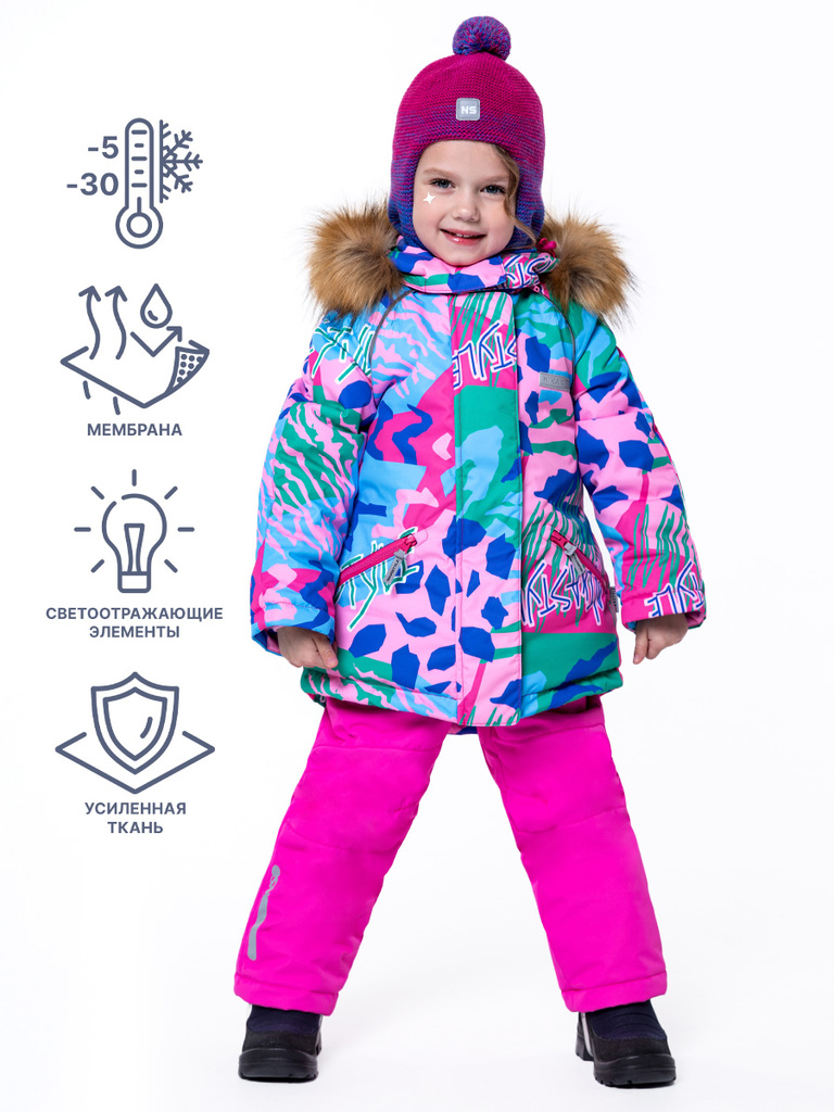 Комбинезон САФАРИ из мембранной ткани 5000/5000 с водо- грязеотталкивающей технологией TEFLON. Мембранная ткань это непродуваемый и водонепроницаемый материал, который надежно защитит от ветра и влаги... Показать описание. Благодаря дышащим свойствам мембраны ребенку будет комфортно в любую погоду и он не вспотеет. Ткань обработана снаружи экологически чистым протектором TEFLON для защиты от воды и грязи. Мембрана в сочетании с утеплителем нового поколения FIBERlite сохранит тепло во время прогулок, позволит телу дышать. Хлопковая подкладка обеспечит повышенный комфорт для ребенка. Функционал: длинная центральная застежка обеспечивает легкое одевание малыша, карманы на молнии, ветрозащитная планка, съемный капюшон и меховая опушка на молнии, кулиса для регулировки объема, резинка на спинке для создания силуэта. Мы все продумали до мелочей, поэтому модель дополнительно оснащена мягкими трикотажными манжетами в рукавах, снегозащитными муфтами на брючинах, силиконовыми штрипками, светоотражающими элементами для безопасности ребенка в темное время суток. Комфортная температура эксплуатации от 0° до -30° С. Рекомендуем приобрести комплектом аксессуары, обувь и другие вещи из капсулы в карточке товара, которые отлично сочетаются с изделиями коллекции.