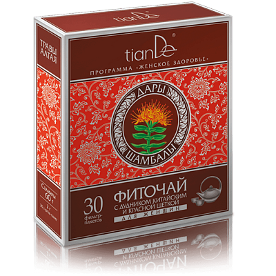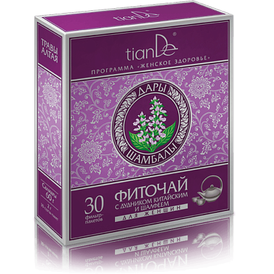 Фиточаи TianDe, изготовлены из дикорастущих растений Алтая. Все фиточаи программы «Женское здоровье» содержат уникальное по своему целительному воздействию растение – дудник китайский. Эта лекарственн... Показать описаниеая трава содержит природные эстрогены, витамин Е и эссенциальные жирные кислоты, которые усиливают чувствительность рецепторов к собственным половым гормонам – эстрогенам. Когда вам это нужно Применяется для профилактики и в составе комплексного лечения заболеваний женской половой сферы: доброкачественных опухолей гениталий, эндометриоза, для стимуляции регенерации тканей.