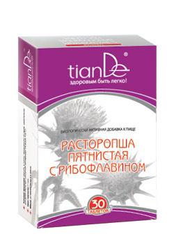 Здоровая печень! Описание БАД «Расторопша пятнистая с рибофлавином» рекомендуется для профилактики и лечения заболеваний печени. Препарат растительного происхождения, обладающий противомикробной, прот... Показать описаниеивовоспалительной, желчегонной и антиоксидантной активностью, содержит флаволигнан силимарин, который в клетках печени действует как: - антиоксидант, препятствующий перекисному окислению клеточных мембран - гепатопротектор, защищающий клетки печени от различных неблагоприятных воздействий (токсины, ишемия, радиация, вирусы и др.) - вещество, обладающее противовоспалительной и антиаллергической активностью - стимулятор регенерации тканей печени. Для усиления действия силимарина в состав БАДа «Расторопша с рибофлавином» введен витамин В2– один из ключевых витаминов, «двигатель жизни», необходимый для полноценной работы печени, который без устали стимулирует производство энергии в клетках, обеспечивает эффективность процессов регенерации и восстановления тканевых структур. Рекомендуется для поддержания и укрепления функций печени, сохранения здоровья кожи, предупреждения процессов старения организма. Способ применения: взрослым по 1 таблетке 1 раз в день во время еды. Минимальный курс приема: 3-4 недели. Не является лекарственным средством.