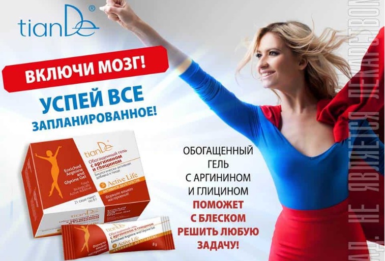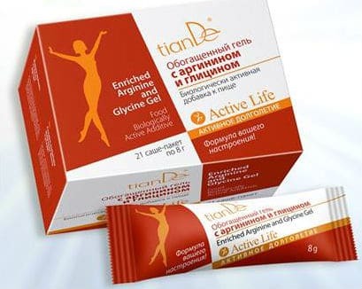Жизнь современного человека проходит в спешке. Многие стремятся к достижению поставленной цели, не жалея собственных сил. Работа отнимает большую часть времени, а ведь нужно уделить внимание семье и о... Показать описаниебщению с друзьями. Жизнь в таком ритме приводит к стрессам, поэтому для поддержки организма следует принимать комплекс витаминов и минералов. Гель с аргинином и глицином – отличное средство для поддержания вашего здоровья. Чтобы всегда быть в отличной форме, следует осуществлять комплексный прием аргинина и глицина, который наполнит организм силами, подарит заряд бодрости и хорошего настроения. Он позаботится о самочувствии людей среднего и пожилого возраста, избавит от лишних килограмм. Ежедневный прием глицина и аргинина наполнит жизнь радостными мгновениями. Ваша жизнь станет ярче и позитивнее, не упустите момент! Гель с аргинином и глицином обеспечит организм необходимыми и полезными веществами: — L-аргинин повышает выносливость и иммунитет и защищает кожу от преждевременного старения — глицин – повышает жизненный тонус и выделяет гормон радости — витамин В5 объединяет действие двух компонентов и в значительной степени способствует усилению эффекта. Вещество L-аргинин относится к аминокислотам, которые частично присутствуют в организме, но в малых дозах, поэтому запасы нужно регулярно пополнять. Чтобы получать его дополнительно, следует употреблять продукты, обогащенные веществом, включая биодобавки. Полезные свойства: — способствует быстрому заживлению ран — поддерживает иммунитет и гормональную функцию организма — расширяет сосуды, предотвращая образование тромбов — стабилизирует уровень сахара в крови — снижает количество холестерина — уменьшает риск возникновения сердечно-сосудистых заболеваний — способствует снижению артериального давления — стимулирует выработку тестостерона. Если в организме нарушается обмен веществ, что случается при наличии некоторых заболеваний, ощущается острая нехватка L-аргинина. С возрастом количество аминокислот становится меньше, тогда следует пополнять запасы извне. Чтобы организм функционировал бесперебойно, нужно принимать биодобавки. Гель с аргинином и глицином – ваш незаменимый помощник. Не является лекарственным средством.