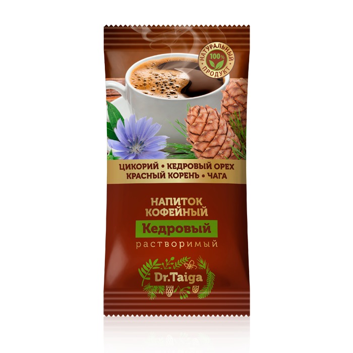 Потрясающий вкус и бодрость с пользой для организма – все это в каждой чашечке кофейного напитка «Кедровый». Настоящее таежное лакомство со вкусом кедровых орехов станет отличной альтернативой кофе! Э... Показать описанието на 100% натуральный продукт по таежному рецепту, созданный на Алтае, в одном из самых экологически чистых мест планеты. Без ГМО, консервантов, красителей и ароматизаторов – в составе напитка только натуральные природные компоненты! Продукт без кофеина, а значит, ты получаешь бодрость и энергию без возбуждения нервной системы. Благодаря активным компонентам в составе напиток «Кедровый» способствует укреплению иммунитета, нормализации работы ЖКТ, заботится о фигуре, улучшает физическую и умственную активность, а также благотворно влияет на женский и мужской организм. Цикорий в составе напитка является природным источником инулина. Применение: 1 саше (3 г) развести в 200–220 мл горячей воды.