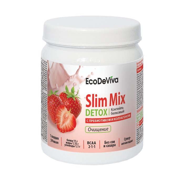 Любишь полакомиться свежей клубникой? Наслаждайся вкусом и пользой этой ягоды круглый год! Slim Mix с соком и ягодами клубники создан для тех, кому необходимо провести «генеральную уборку» в организме... Показать описание, привести вес в норму и поддержать работу желудочно-кишечного тракта. В составе Slim Mix Detox правильный баланс животного и растительного белка: сывороточного, конопляного и тыквенного, натуральные «спортивные» и «интеллектуальные» аминокислоты (в том числе и ВСАА), витамины и микроэлементы, антиоксиданты, природные «энергетики» и многие другие вещества, необходимые для полноценной работы организма. Этот коктейль дополнительно усилен измельченными ягодами и соком клубники, активным пребиотиком инулином и гидролизованным коллагеном. В составе микса исключительно натуральные компоненты: без ГМО, сои, сахара, консервантов, усилителей вкуса. В одной порции коктейля – 11 граммов белка и всего 59 килокалорий! Наслаждайся вкусом, пользой и идеальной фигурой! Применение: 2 полные мерные ложки (18–20 г) сухого продукта взбить в шейкере или блендере с 200 мл обезжиренного молока комнатной температуры.