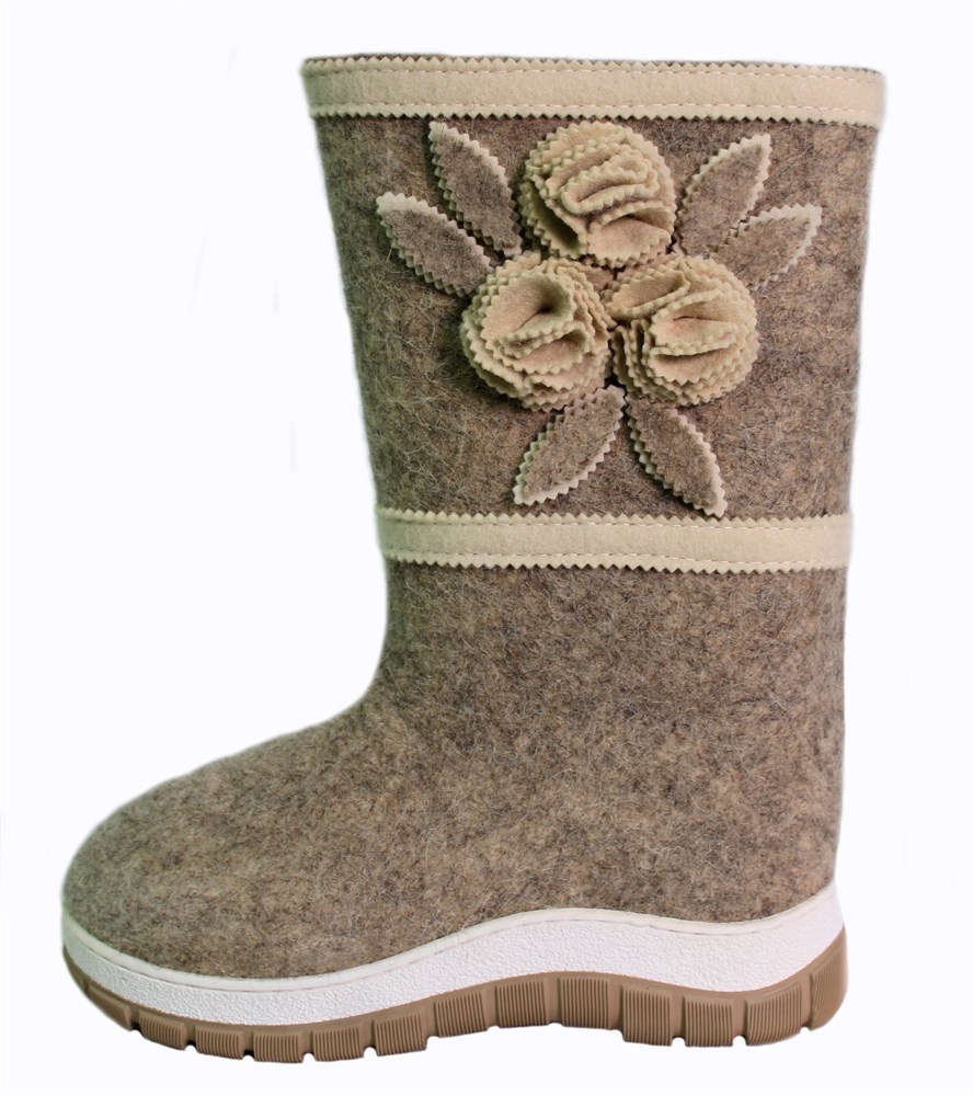 Внимание: Модель рассчитана на среднюю ногу со средним подъемом. Ботинки "Дорес" - повседневная зимняя обувь с комбинированным войлочным верхом из 100% натуральной овечьей шерсти. Модель декорирована ... Показать описаниенатуральной кожей спилок велюром. Застежка молния расположена с внутренней стороны обуви. Толстая подошва ТЭП и дополнительная стелька из войлока сохранит ноги в тепле, а наличие протектора позволит уверено передвигаться.