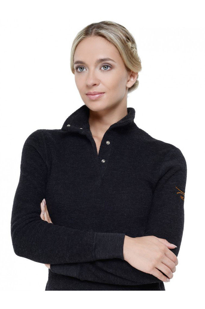 Самое тёплое термобельё Norveg. Как понятно из названия, серия -60C специально создана для защиты от холода при экстремальных морозах. Термобельё Norveg - 60C рассчитано на Северные регионы, где темпе... Показать описаниература опускается до -50 градусов. Но оно также подойдёт и для жителей средней полосы. Если вы работаете целый день в холодном помещении или на улице, или просто не любите морозы и очень мёрзнете зимой — женская футболка с длинным рукавом -60C, то что вам нужно. Она тёплая, воздушная,хорошо согревает. Технология фелтинг — валяние Чтобы добиться максимально тёплых показателей, производитель отказался от стандартного тканого трикотажа, когда из шерстинок делают нику, а из нитки плетут полотно. Чем толще полотно — тем теплее термобельё. Но, толщина термобелья не может возрастать до бесконечности, ведь его неудобно носить. И тогда было принято решение свалять полотно. В процессе валяния волокна переплетаются между собой, образуя множество воздушных пузырьков, которые удерживают тепло нашего тела. На квадратный сантиметр в валяном материале шерстинок больше, чем в тканом, соответственно и больше воздушных пузырьков. Именно количество пузырьков, а не толщина материала отвечает за теплоизоляцию будущего термобелья. 100% шерсть мериносов марки Extra fine. Шерсть класса люкс — абсолютно не колется и не вызывает аллергию. Подходит людям с чувствительной кожей. Шерстяное термобельё, в отличие от синтетического, не заванивается к концу дня. Нет неприятного запаха даже после недельной носки. Удобство эксплуатации. Плоские швы не давят и не натирают кожу. Свободный анатомический крой не ограничивает движений. Воротник-стойка на кнопках — защищает шею от холодного воздуха. Удлинённая спинка защищает поясницу. Практичный чёрный цвет. Женская футболка с длинным рукавом Norveg -60C сочетается с джинсами и спортивным стилем — можно носить как свитер. Мягкий и воздушный материал приятный на ощупь.