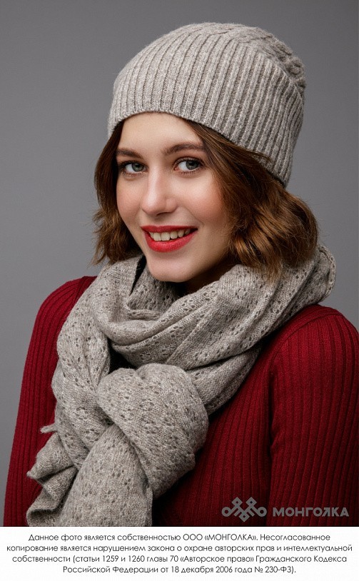 Элегантный кашемировый берет — лучший вариант на каждый день. В составе берета 50% кашемира — тонкого, мягкого и теплого полотна, изготовленного из пуха кашемировых горных коз, обитающих в северных ре... Показать описаниегионах Индии, Китая, Непала, Пакистана, Монголии — и 50% шерсти монгольской овцы. Вязаный берет, благодаря своему составу, приятен на ощупь, не колется, отводит лишнюю влагу, дарит чувство сухости и комфорта в холодную погоду. Шерстяной берет сочетается с любым видом зимней одежды, благодаря классическому дизайну и базовому цвету. Состав: 50% кашемир, 50% шерсть монгольской овцы Цвет: серый Диаметр: 27,5
