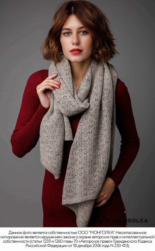 Шерстяной палантин будет прекрасным дополнением гардероба — его можно носить в качестве шарфа и использовать как головной убор. Чтобы теплый палантин из шерсти согревал в самые сильные морозы рекоменд... Показать описаниеуем приобретать аксессуары, в составе которых натуральная шерсть. Палантин из 100% шерсти монгольской овцы согревает и удерживает теплою. Натуральные волокна овечьей шерсти обладают большим количеством ланолина в составе и не копят бактерии и опасные микроорганизмы — благодаря такому свойству изделия из этого материала очень гигиеничны. К палантину из овечьей шерсти можно подобрать комплект из ассортимента головных уборов. В нашем каталоге вы найдете еще больше товаров из натуральной шерсти, доставленных напрямую из Монголии. Внимание! У данной модели 2 вида рисунка (фото 2), отправка в зависимости от наличия. При подтверждении заказа можно уточнить у менеджера, какой вариант в наличии. Производитель: Монголия, TOD Состав: 100% шерсть монгольской овцы Цвет: серый Размер 180х55 см