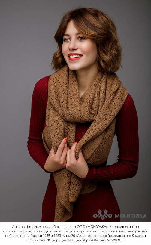 Шерстяной палантин будет прекрасным дополнением гардероба — его можно носить в качестве шарфа и использовать как головной убор. Чтобы теплый палантин из шерсти согревал в самые сильные морозы рекоменд... Показать описаниеуем приобретать аксессуары, в составе которых натуральная шерсть. Палантин из 100% шерсти монгольской овцы согревает и удерживает теплою. Натуральные волокна овечьей шерсти обладают большим количеством ланолина в составе и не копят бактерии и опасные микроорганизмы — благодаря такому свойству изделия из этого материала очень гигиеничны. К палантину из овечьей шерсти можно подобрать комплект из ассортимента головных уборов. В нашем каталоге вы найдете еще больше товаров из натуральной шерсти, доставленных напрямую из Монголии. Производитель: Монголия, TOD Состав: 100% шерсть монгольской овцы Цвет: бежевый, коричневый Размер 104х100 см