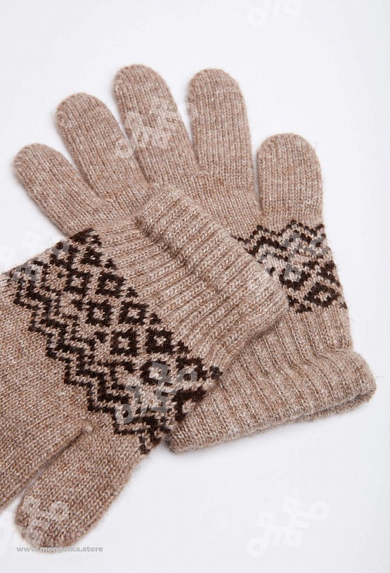 Перчатки из шерсти монгольской овцы согреют руки в холодную погоду, а благодаря широкой цветовой палитре могут сочетаться с любым зимним образом. Перчатки на 70% состоят из шерсти монгольской овцы, а ... Показать описаниезначит отводят лишнюю влагу и обладают износостойкостью, поэтому долгое время будут радовать вас, даря ощущение тепла и сухости. А вискоза в составе позволяет изделиям сохранять форму, делает каждую модель прочнее и защищает от преждевременного износа. В шерстяных перчатках рукам будет комфортно, ведь они приятные на ощупь и совсем не колются, а мягкая, эластичная резинка обеспечивает хорошую фиксацию на запястье. Зимние перчатки станут не только отличным аксессуаром для мужчин и женщин, но и приятным подарком для близкого человека. В нашем ассортименте вы найдете еще больше товаров из натуральной шерсти, доставленных напрямую из Монголии. Производитель: Монголия, TOD Состав: 70% шерсть монгольской овцы, 30% вискоза Цвет: коричневый с рисунком Размерный ряд: Перчатки Длина ладони Полная длина 6,5-7,5 17 см ± 1,5 см 23 см ± 1,5 см 8-9 18 см ± 1,5 см 26 см ± 1,5 см