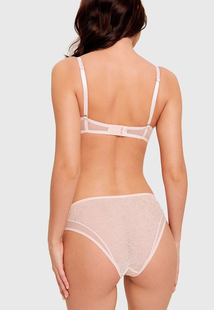 Для самого романтичного танца души, для самого трепетного свидания с собой и всем миром создано это белье Sensera. Очаровательный бюстгальтер выполнен из мягкого эластичного материала пудрово-розового... Показать описание цвета. Он прикасается к телу, как нежный поцелуй. Мягкие чашки с косточками декорированы аккуратным узором на легкой сетке. Регулируемые бретели создают оптимальную посадку. Застежка на 2 крючка. Без push up.