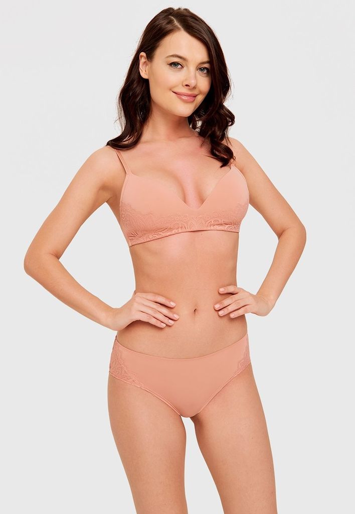 Идеальное однотонное гладкое бельё Sensera. Бюстгальтер выполнен из приятного телу эластичного материала. Лаконичная вставка из кружева в тон добавляет изюма, но сохраняет сдержанность образа. Формова... Показать описаниенные треугольные чашки без косточек и без push up сохраняет естественную красивую форму груди. Регулируемые бретели, полоска под грудью и застежка на 2 крючка обеспечивают оптимальную посадку.