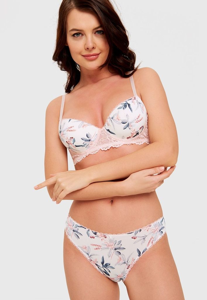 Легкий образ с трендовым флоральным принтом. Нежный бюстгальтер Sensera выполнен из приятного телу гладкого материала с принтом и мягкого кружева. Формованные чашки с косточками и push up во всех разм... Показать описаниеерах подчеркивают вашу красоту. Регулируемые бретели, боковые корсетные вставки и застежка на 2 крючка обеспечивают оптимальную посадку и сохраняют комфорт. Воплощение женственности.