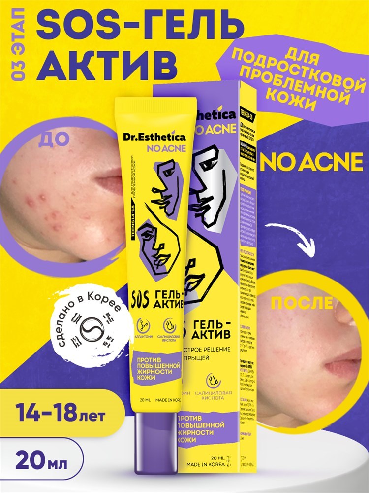 Чувствуете себя неуверенно на встречах и совещаниях из-за прыщей? Пришло время взять ситуацию под контроль и помочь своей коже справиться с внезапным появлением акне, покраснений и высыпаний. Гель-кор... Показать описаниеректор Dr. Esthetica NO ACNE разработан специально для проблемной проблемной взрослой кожи с учётом её возрастных особенностей. После 25 лет в силу возрастных изменений и постоянного стресса проблемная кожа требует специального ухода, направленного на восстановление баланса и ускорение процессов заживления. Точечное средство от прыщей на лице помогает уменьшить внезапно возникшие покраснения и успокоить кожу. Гель для проблемной кожи имеет в своем составе специально подобранные активные компоненты, которые усиливают действие друг друга и тем самым позволяют избавиться точечно от прыщей на лице всего за 2-3 применения в день. Ниацинамид 2% мгновенно успокаивает раздражённую кожу и восстанавливает её барьерную функцию. Салициловая кислота оказывает противовоспалительное действие и способствует быстрому заживлению прыщей. Благодаря своему составу точечный гель от прыщей и акне Dr. Esthetica NO ACNE помогает справиться с внезапными воспалениями за считанные часы. Его эффективность подтвердили результаты потребительского теста: 74% отметили, что высыпания уменьшились после 3-го применения геля-корректора. Имея под рукой средство от прыщей на лице, вам не придётся менять планы или откладывать важные дела: Dr. Esthetica быстро придёт на помощь в нужной ситуации.