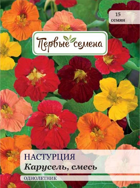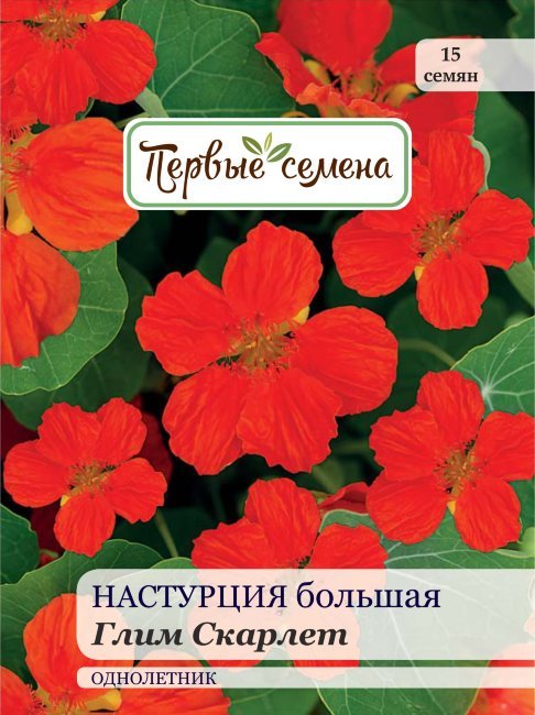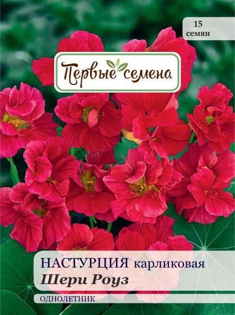 Очаровательный миниатюрный сорт настурции! Карминно-красные цветки диаметром 4 – 5 см на компактных кустах красиво оттеняются округлыми изумрудно-зелеными листьями. Настурция прекрасно смотрится в бор... Показать описаниедюрах, горшках, контейнерах, балконных ящиках, а также в висячих корзинах. При массовой посадке в открытый грунт формирует роскошный цветочный ковер. Отличается обильным и продолжительным цветением. Лучше всего растет на солнечных участках с хорошо дренированной супесчаной почвой. Молодые листья, цветки и семена пригодны для употребления в пищу.
