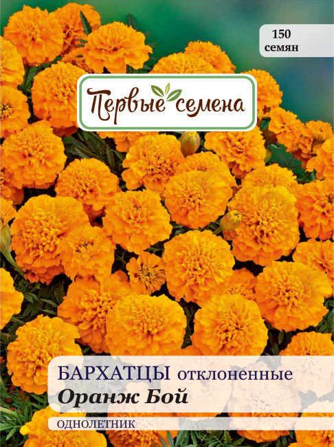 Оригинальная разновидность миниатюрных бархатцев! Многослойные ярко-оранжевые цветки расцветают на компактных (20 – 25 см в высоту) ветвистых кустах. Листья густые, узкие, темно-зеленые. Цветение обил... Показать описаниеьное и продолжительное. Отлично смотрится в бордюрах, рабатках, контейнерах, кашпо, хорошо сочетается с высокорослыми сортами. Предпочитает солнечные участки с хорошо дренированной почвой. Бархатцы являются проверенным средством для борьбы с нематодой, поэтому их часто рекомендуют к посадке по периметру грядок с овощами.