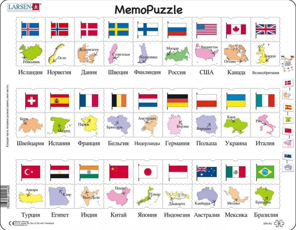 Мемопазл Larsen «Флаги», 54 эл. Вопросы по товару