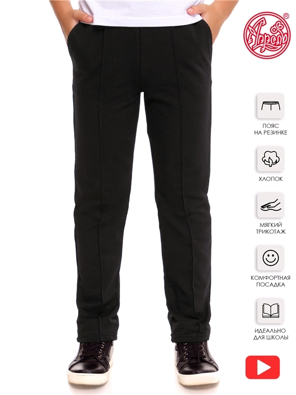 Состав: футер / хлопок 95% + лайкра 5%. Брюки для мальчика выполнены из футера - мягкого плотного хлопкового полотна с лайкрой. Изделие на эластичном поясе, имеет удобные карманы и декоративные отстро... Показать описаниечки-стрелки. Отличный вариант для школы! Уход: только машинная стирка (руками не стирать!) при температуре 40 градусов, без предварительного замачивания.