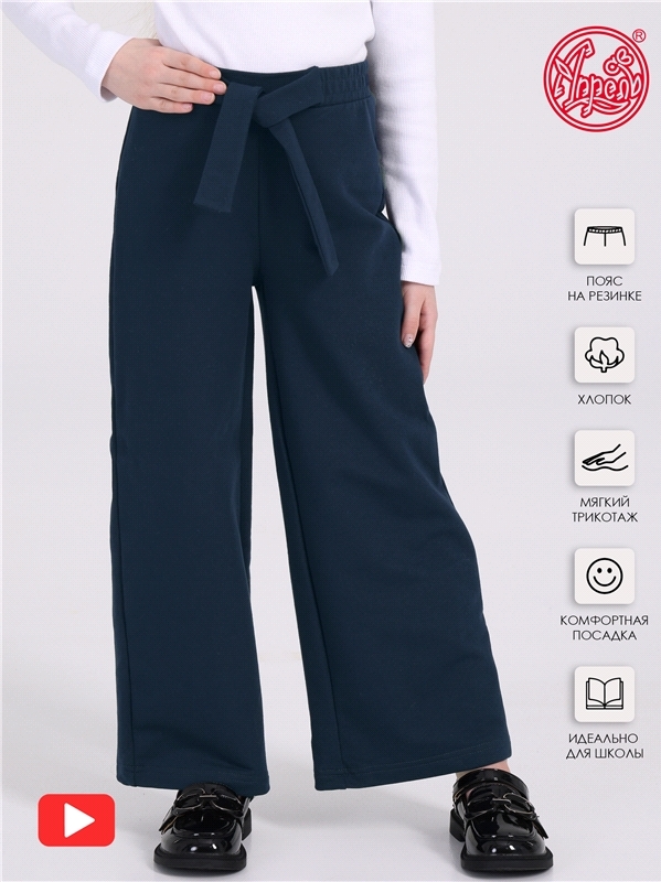 Состав: жаккард / хлопок 55% + ПЭ 42% + лайкра 3%. Широкие брюки палаццо для девочек выполнены из плотного полотна с рельефным рисунком, выполненным с применением жаккардового плетения. Изделие без ка... Показать описаниерманов, украшено декоративным поясом. Отличный вариант для школы и не только! Уход: только машинная стирка (руками не стирать!) при температуре 40 градусов, без предварительного замачивания.