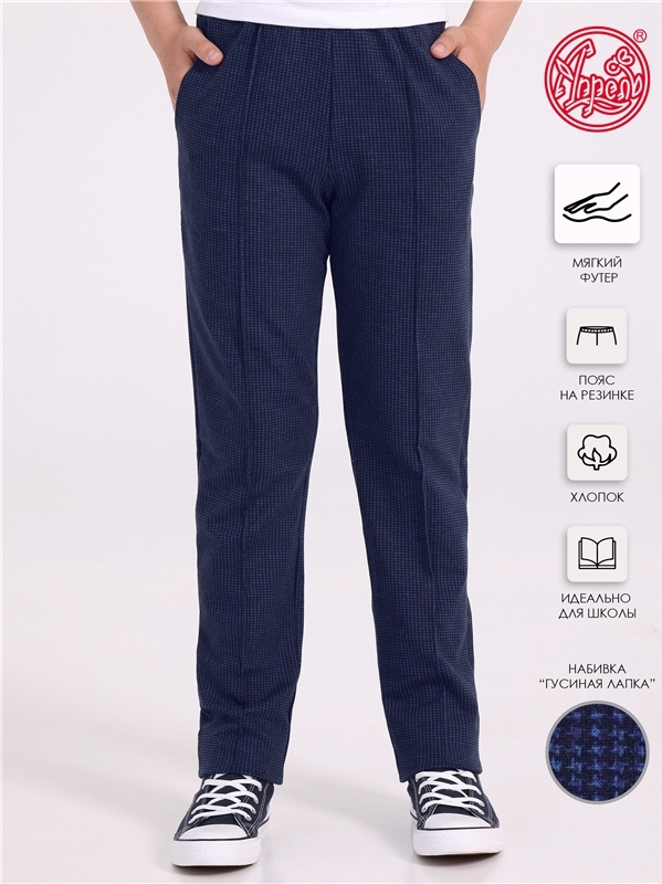 Состав: жаккард / хлопок 55% + ПЭ 42% + лайкра 3%. Брюки с увеличенной полнотой для мальчика выполнены из плотного полотна с рельефным рисунком, выполненным с применением жаккардового плетения. Издели... Показать описаниее на эластичном поясе, имеет удобные карманы и декоративные отстрочки-стрелки. Отличный вариант для школы! Уход: только машинная стирка (руками не стирать!) при температуре 40 градусов, без предварительного замачивания.