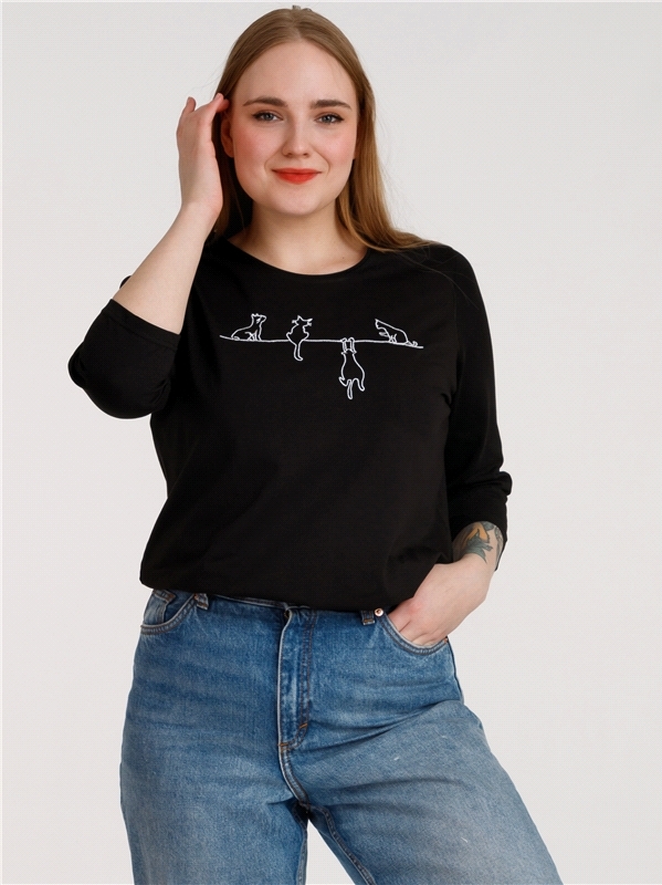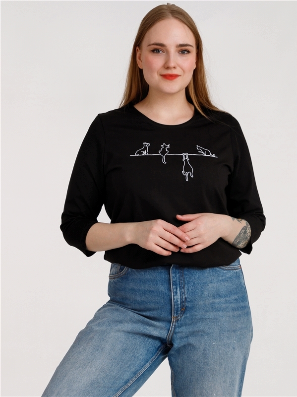 Состав: кулир с лайкрой / хлопок 92% + лайкра 8%. Симпатичный лонгслив выполнен из кулира - легкого хлопкового полотна с лайкрой. Изделие полуприлегающего силуэта с рукавами 3/4, округлым вырезом горл... Показать описаниеовины, украшено оригинальной вышивкой. Актуальный дизайн делает его незаменимым предметом женского гардероба! Уход: только машинная стирка (руками не стирать!) при температуре 40 градусов, без предварительного замачивания. Изделия с печатью или с декором перед стиркой необходимо вывернуть на изнаночную сторону.